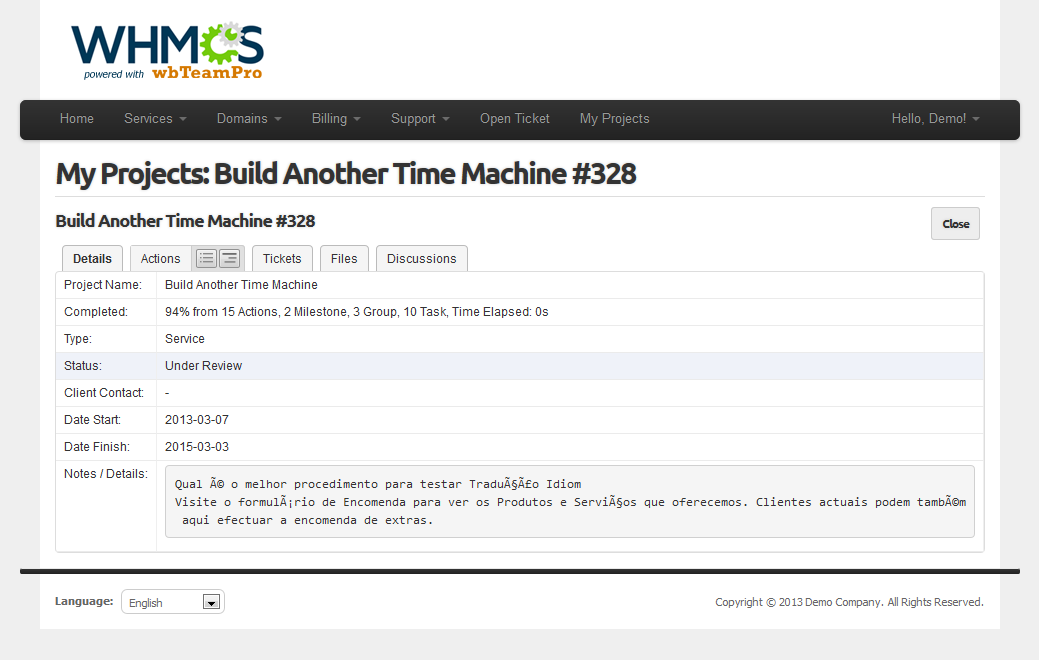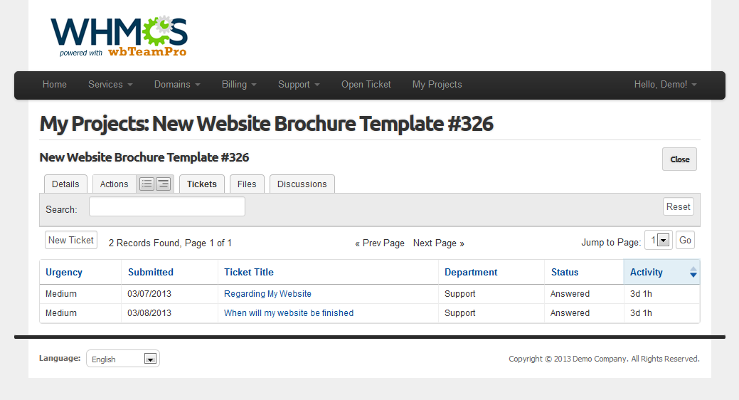 With wbTeamPro Project Management for WHMCS you will receive personal support and ongoing feature enhancements. wbTeamPro strives to provide an excellent balance of feature-rich functionality with a well organized and intuitive system for managing the breath of your project material.