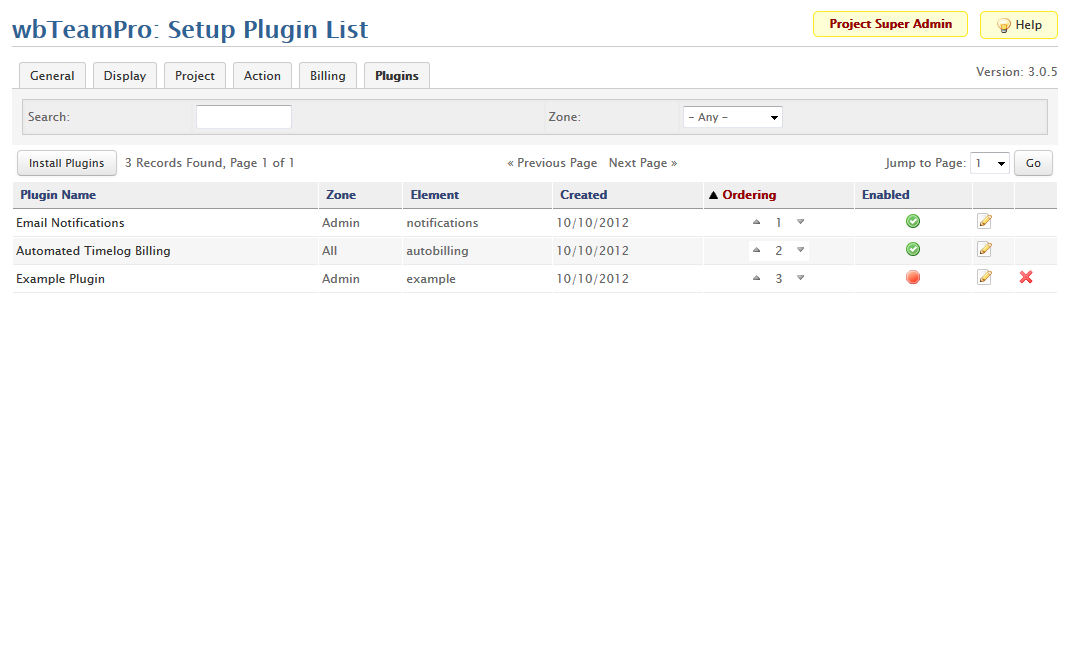 wbTeamPro provides a Plugin architecture that can be used to directly implement new functionality into the system. Plugins are a packaged set of functionality that can be quick implemented or deactivated as needed.